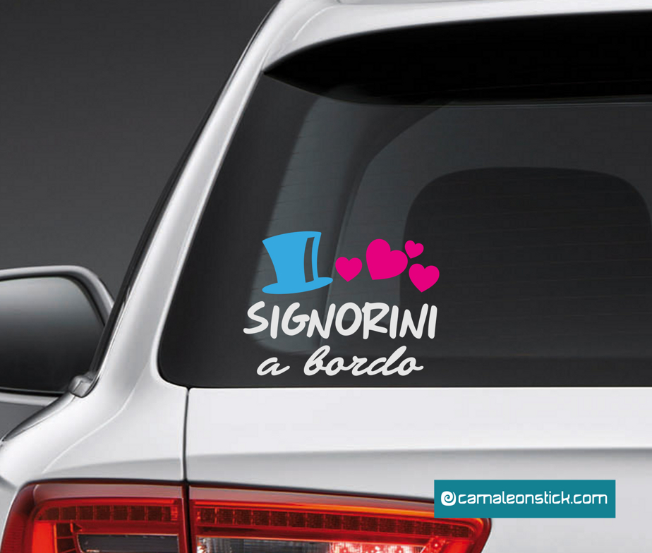 Decorate il lunotto posteriore della vostra auto con l'adesivo “Signorini a bordo”