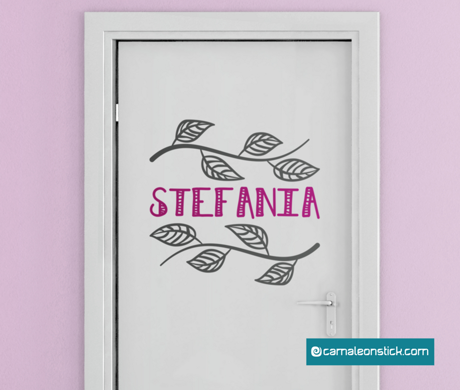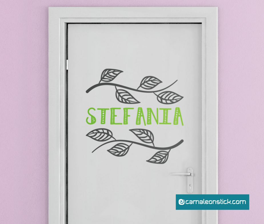 Decorate la porta della cameretta con l’adesivo murale Nome personalizzato foglie.